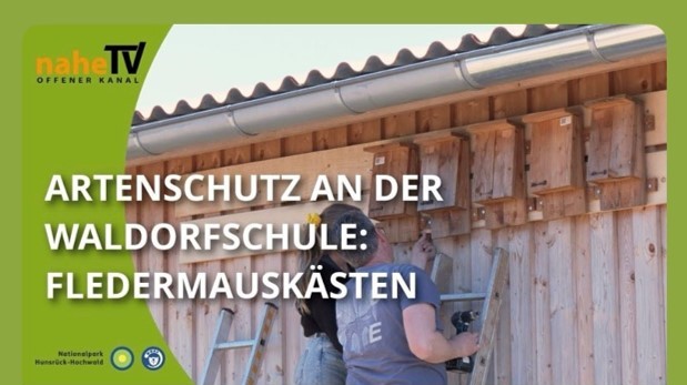 Anfang April wurden an der Freien Waldorfschule Saar-Hunsrück 10 Fledermausnistkästen aufgehängt. Die beiden ZENAPA Klimawandelmanager organisierten die Aktion gemeinsam mit dem Nationalpark-Ranger Gabriel Wern. Nach einer kurzen Einführung über die Lebensweise, Besonderheiten und vor allem die Gefährdung der Fledermäuse, machten sich 7 SchülerInnen auf in Richtung Schulbauernhof, um die neuen Behausungen an den Gebäuden aufzuhängen. Im Rahmen dieser Aktion ist ein Videobeitrag entstanden, der Einblick in die Maßnahme gibt: https://www.youtube.com/watch?v=JFkBzSlQSiw