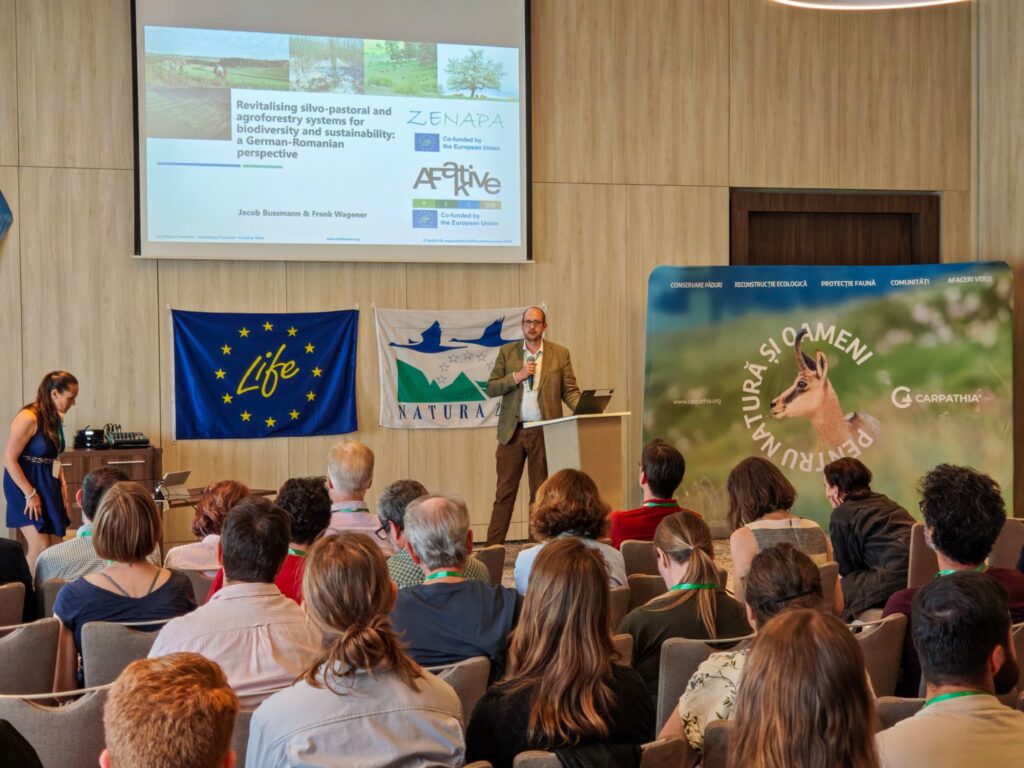 Das Projekt ZENAPA hat an der Tagung des LIFE-Programms zur Wiederherstellung der europäischen Wälder teilgenommen, die in Brasov, Rumänien, stattfand. Mit rund 100 Experten aus 13 Ländern, die 33 LIFE-, Horizon- und Interreg-Projekte vertraten, brachte die Veranstaltung eine inspirierende Gemeinschaft von Wald- und Klimaschutzexperten aus ganz Europa zusammen. Im Rahmen der Plenarsitzung erfolgte ein Vortrag zum Thema „Silvo-pastorale Systeme und Agroforstwirtschaft“. Einen ausführlichen Bericht finden Sie auf unserer Webseite unter: https://zenapa.de/2025/06/13/life-meeting-rumaenien/