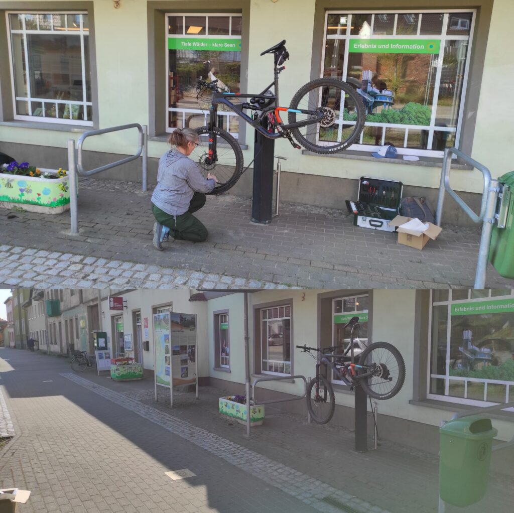 Service- und Ladestation für E-Bikes an der Touristinfo in Joachimsthal