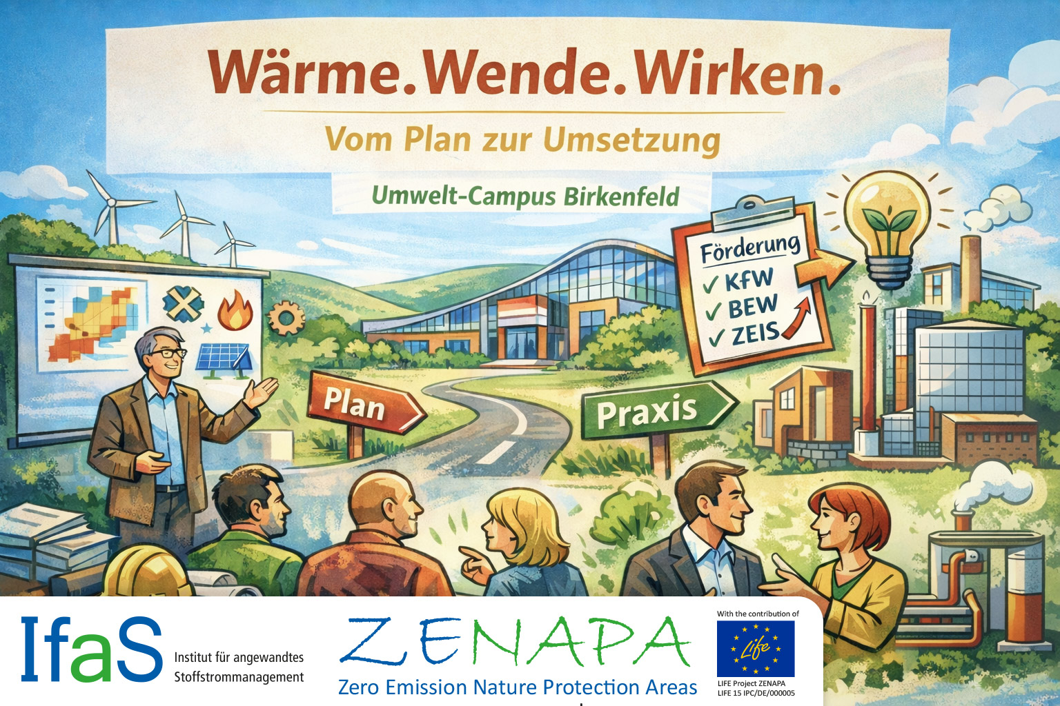 Am 03. Februar 2026 laden wir, das IfaS gemeinsam mit unserem EU-geförderten Klimaschutzprojekt LIFE-IP ZENAPA, zur Fachveranstaltung „Wärme.Wende.Wirken. – Chancen der Kommunalen Wärmeplanung und Instrumente zur Umsetzung“ an den Umwelt-Campus Birkenfeld ein. Die Veranstaltung zeigt auf, wie Kommunen die Ergebnisse der Kommunalen Wärmeplanung erfolgreich in konkrete Maßnahmen überführen können. Im Fokus stehen praxisnahe Umsetzungsstrategien und […]
